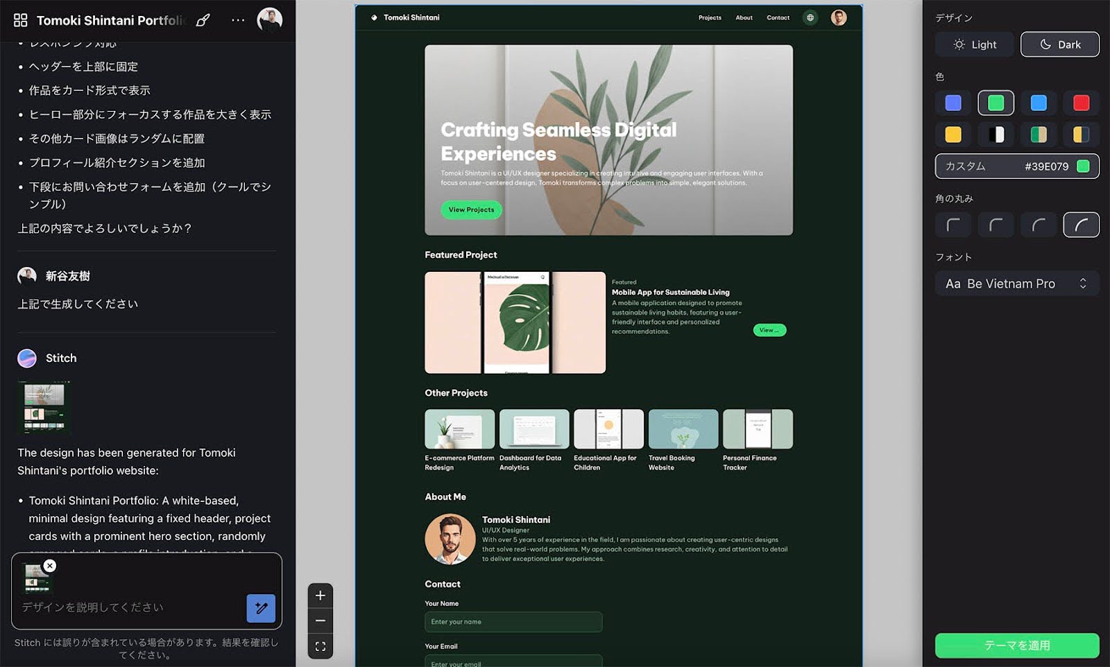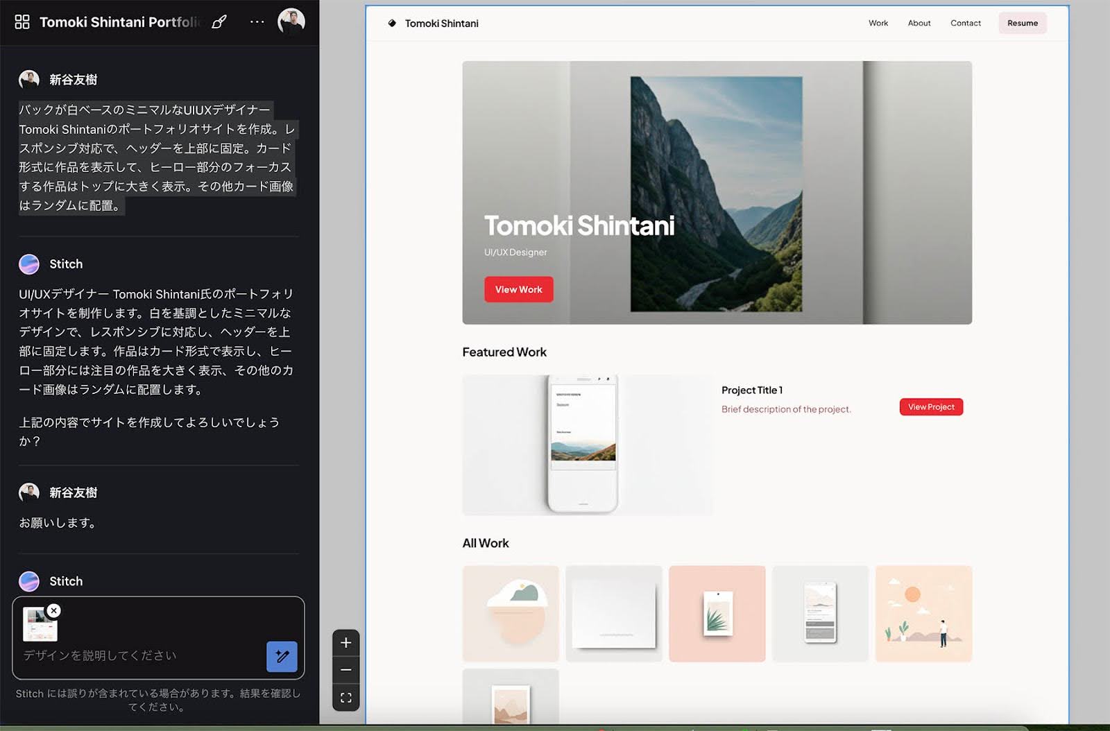 実際にStitchを使ってポートフォリオを作ってみた