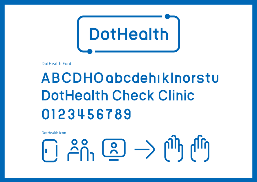 DotHealthのために独自に開発したオリジナルフォントも、直線と円弧をベースにし、デジタルな先進性とヘルスケアに求められる安心感を両立させるデザインとなっています。この書体はロゴやアイコンにも展開され、「点と点がつながって線になる」というDotHealthの象徴的なコンセプトを視覚的に表しています。