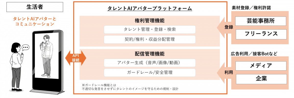 安全な運用に向けては、著作権や肖像権に配慮し、日本の文化と各タレントの個性に最適化された独自のガードレールを設計。タレントや権利者の価値観やブランドイメージに沿った振る舞いをAIアバターに反映させ、不適切な言動を抑止することで、タレントとファンの双方が安心して利用できるコミュニケーション環境の実現を図る。同グループの横断的な AI 推進プロジェクト(HCAI Initiative)の一環として、AIスペシャリストや専門チームが開発に携わり、運用・権利管理を一貫して同グループが担うことで、信頼性の高いサービスを提供する。