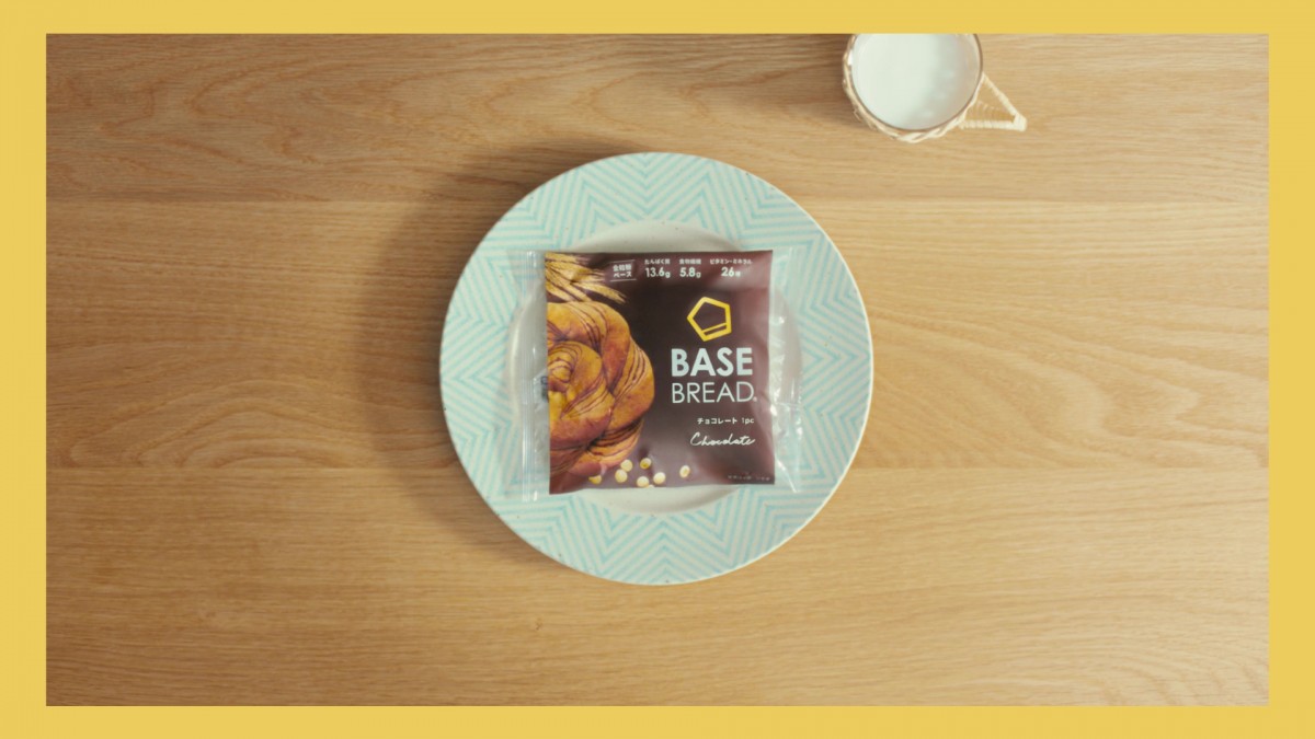 新TVCMは、トースト・ヨーグルト・シリアル・おにぎり・バナナなどの日頃の朝食をBASE BREADへ置き換えるだけという手軽さを、テーブル上の朝食を回転させる演出によって、コミカルかつユニークな演出で表現している。モデルの清音(SAYANE)さんがひとり暮らしのビジネスパーソン役で登場し、栄養バランスの良い朝食で1日を元気にスタートさせる様子が描かれている。