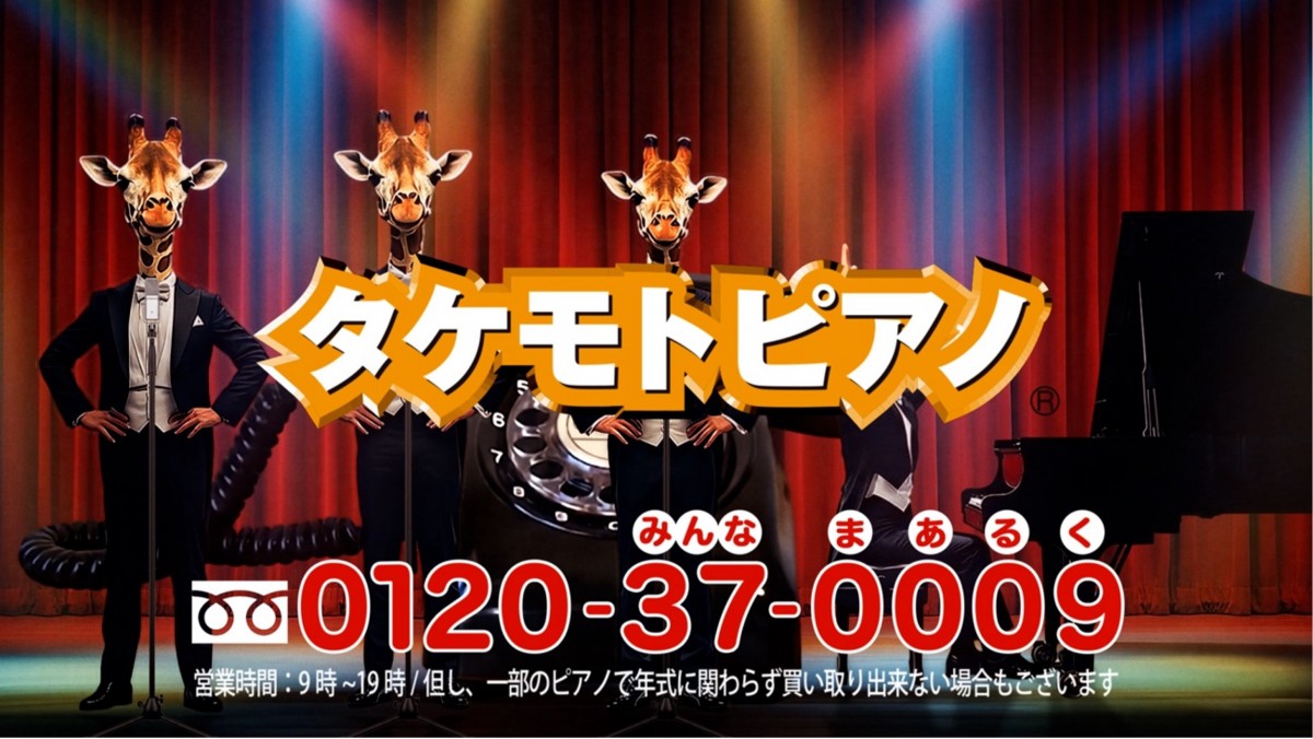 今回発表した第2弾CMは、新シリーズ「AIダンスバージョン」として展開。タケモトピアノのブランドイメージを継承しつつ、タキシード姿の4体のキリンが劇場ステージでパフォーマンスする幻想的かつ印象的な映像で、AIならではの表現を追求した内容となった。
