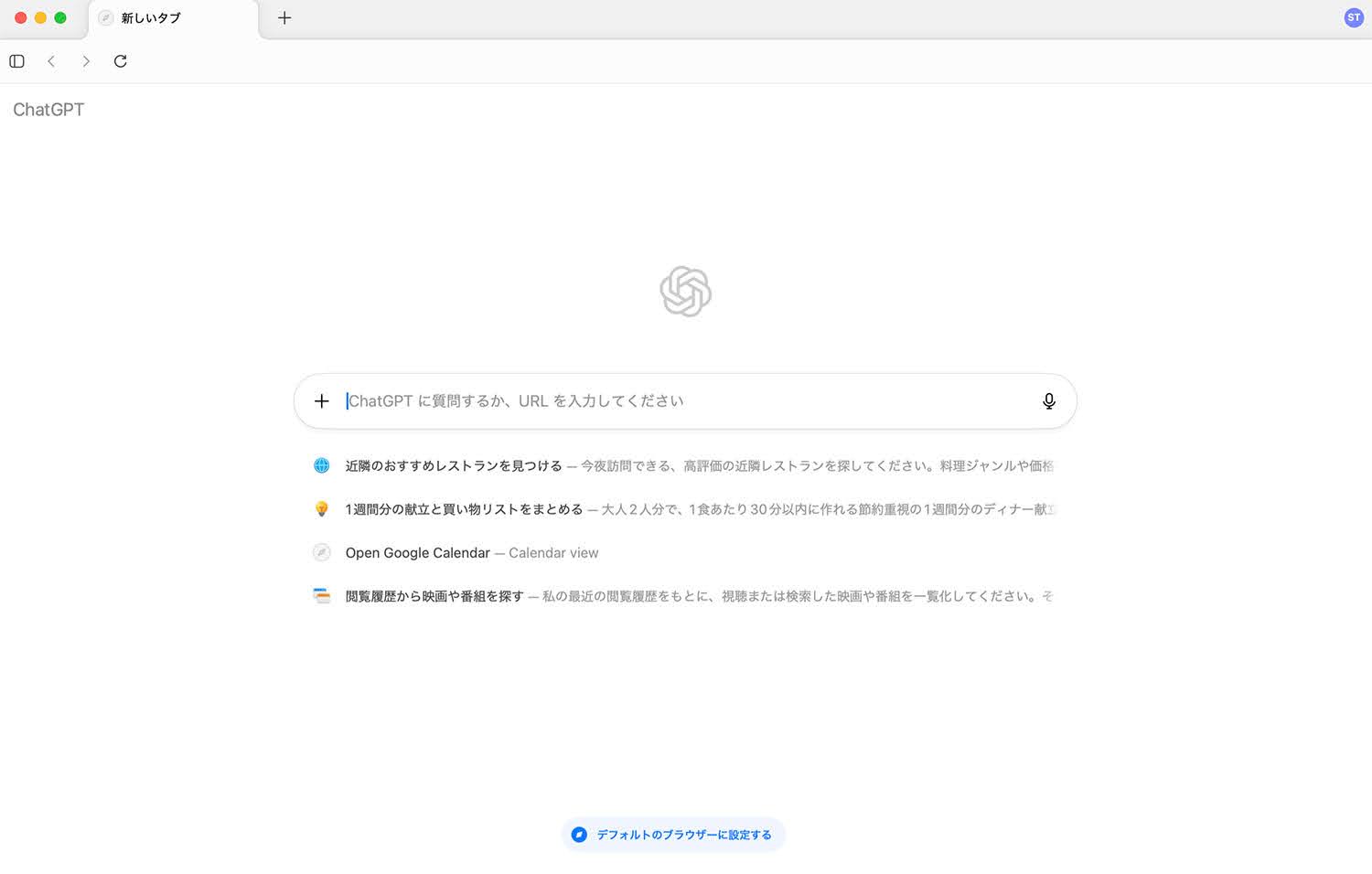 ChatGPT Atlasは単なる「ChatGPTが入ったブラウザ」ではありません。それは、「AIをウェブの中心に据える」ことを前提に設計された、まったく新しいブラウザです。(※2025年10月30日時点でmacOS版のみです)