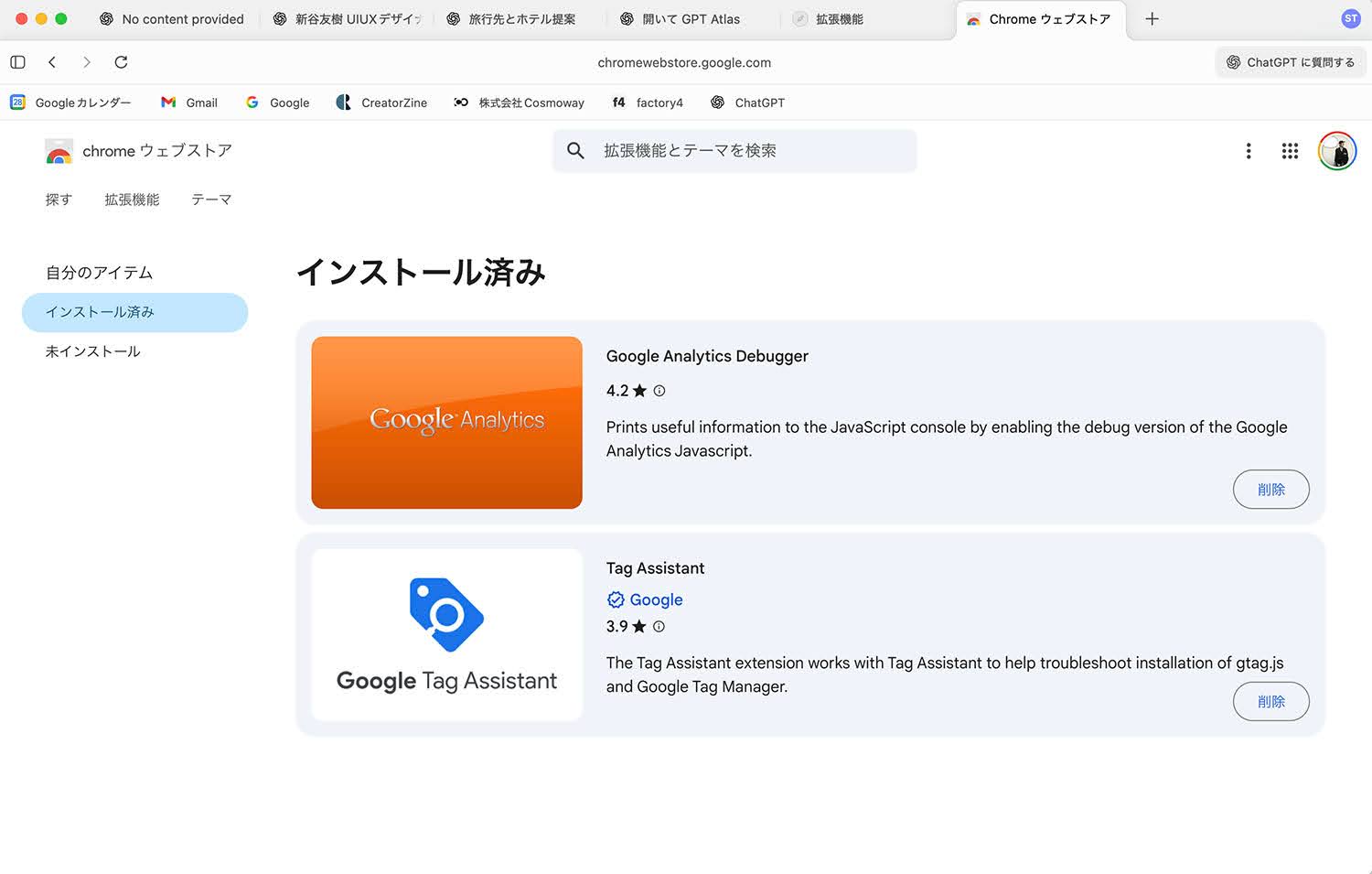 Chromiumベースのため、Chrome拡張を引き続き使用できます(atlas://extensionsでアクセス)新しい体験を導入しつつ、既存ワークフローを壊さない。「馴染みと革新の両立」は、デザイナーにとっての安心感でもあります。(※一部機能しない拡張機能もあるようです)