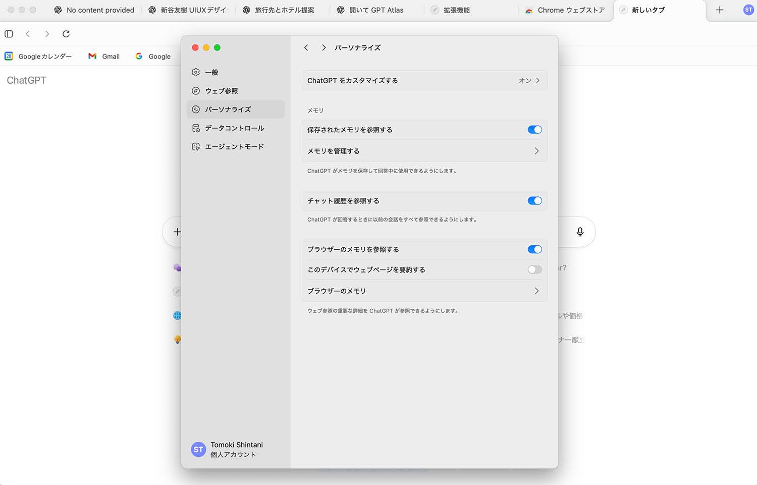 UIUX設計の観点から見れば、この「理解されすぎない設計」も重要です。Atlasは「AIに共有する範囲」をユーザー自身が制御でき、履歴やクエリの記憶範囲を選択することが可能です。「AIの知性」と「ユーザーの安心感」の両立をUIで担保する設計思想には、これからのUXの方向性が見えます。