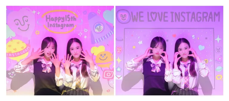 同コラボレーションでは、「EVERFILM」の特徴であるプロジェクターフォト撮影専用背景や、ワンタップで文字やスタンプを施せる「想い出自動落書き」、「メッセージスタンプ」、15周年のお祝いムードにあふれるデザインシールデザイン全9種が用意された。デザインにはInstagramで馴染みのあるモチーフや「WE LOVE INSTAGRAM」などのメッセージが盛り込まれている。